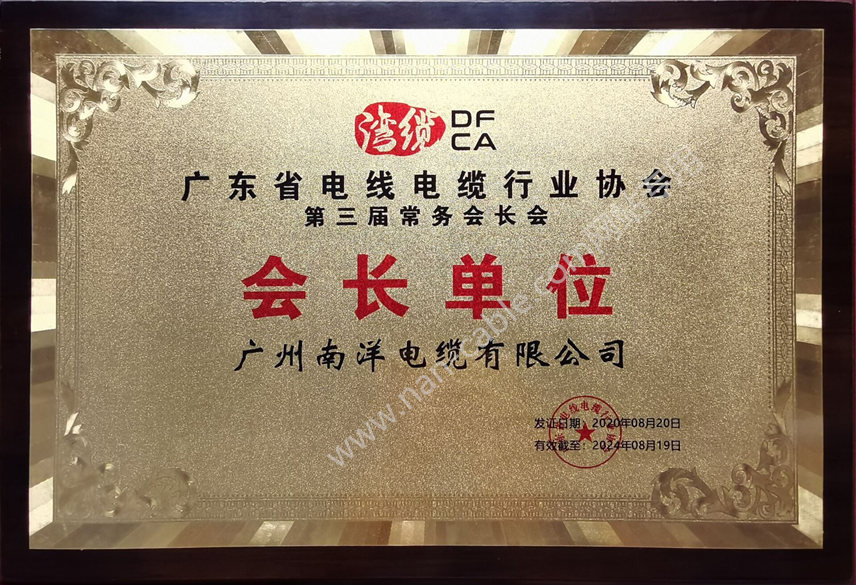 • 廣東省電線電纜行業(yè)協(xié)會會長單位